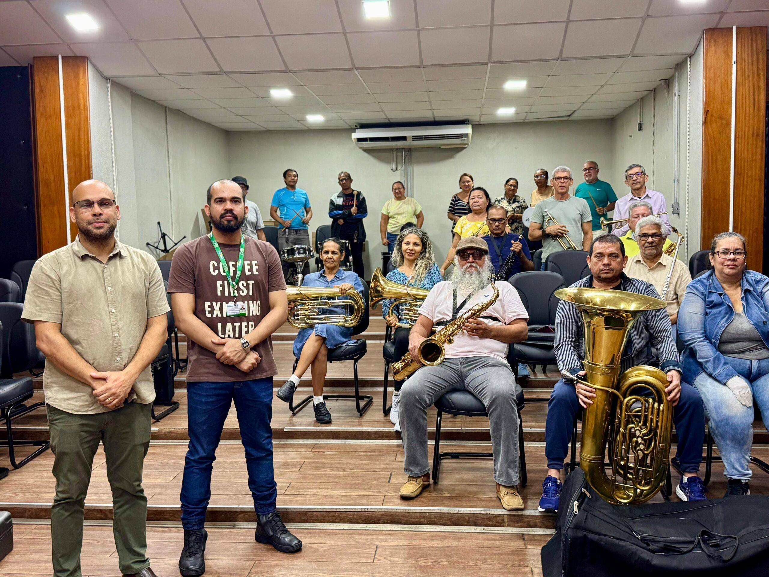 A Universidade do Estado do Amazonas (UEA), por meio do Laboratório de Pesquisa e Práticas de Ensino Musical (Lapem), iniciou, nesta segunda-feira (29/9), os ensaios do Projeto Banda de Música 60+, na Escola Superior de Artes e Turismo (Esat). A ação, pioneira no Brasil, oferece aulas gratuitas de música para pessoas da terceira idade no Amazonas.