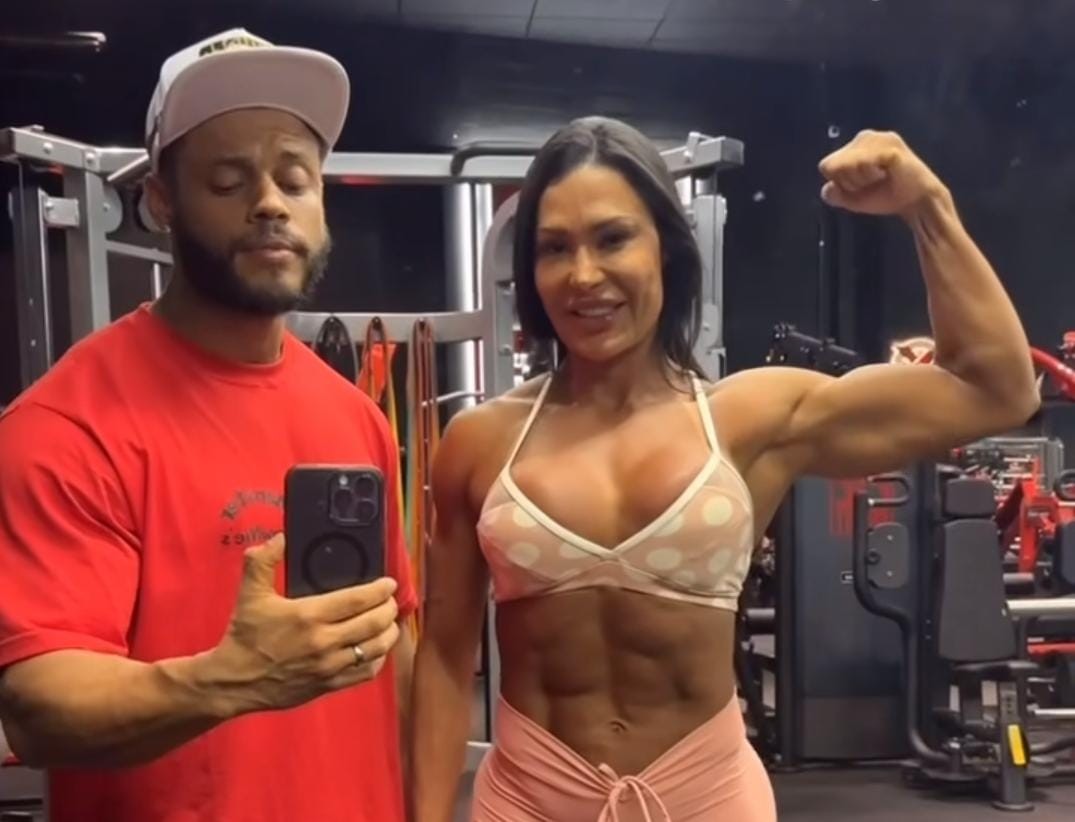 “Parabéns, Hugo Tisk. Que a felicidade acompanhe sempre você, não só hoje, mas todos os dias da sua vida! peço a Deus que continue te abençoando e ilumine seus caminhos! Tamo junto”, escreveu ela, exibindo os músculos, inclusive o tanquinho trincadíssimo, ao lado com o profissional em uma selfie na academia.
